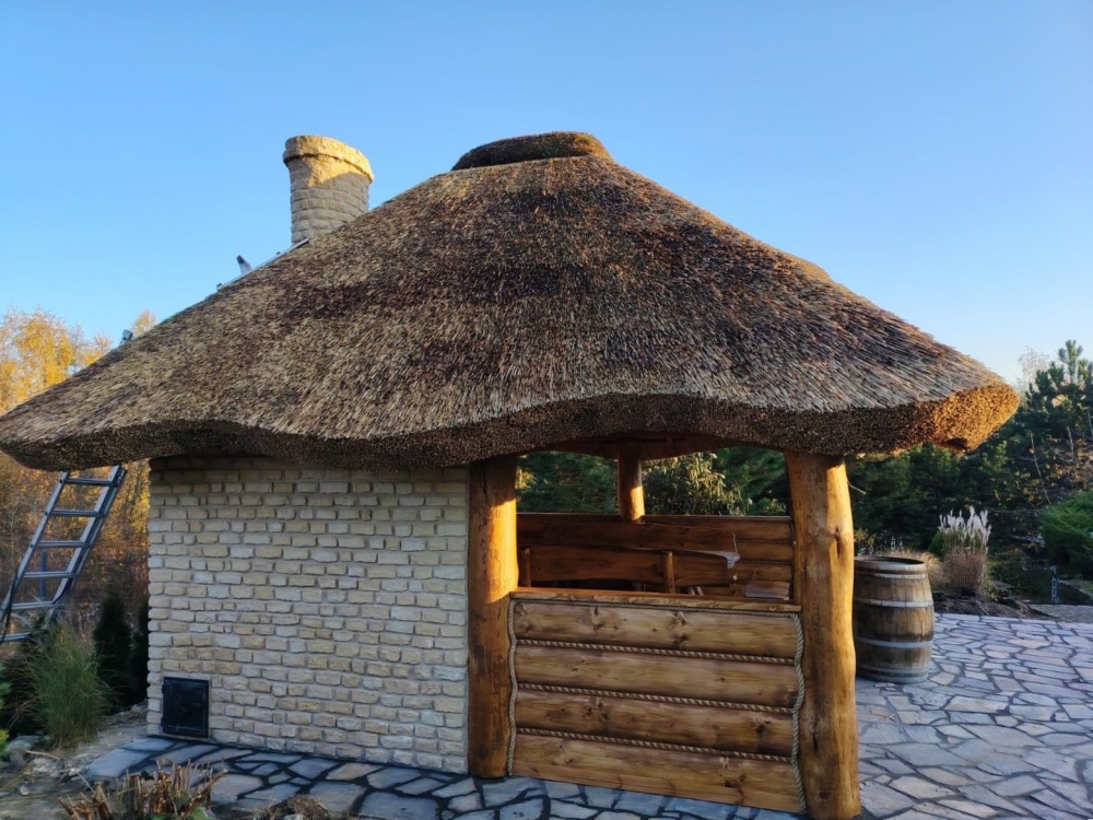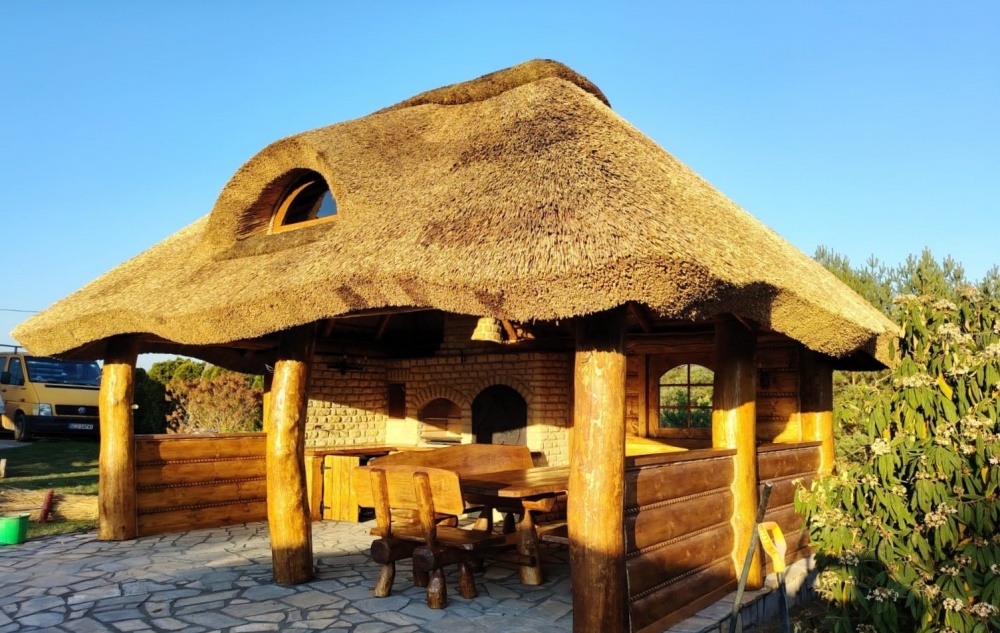- dach kryty strzechą z 1 wolim, nieotwieranym oknem.