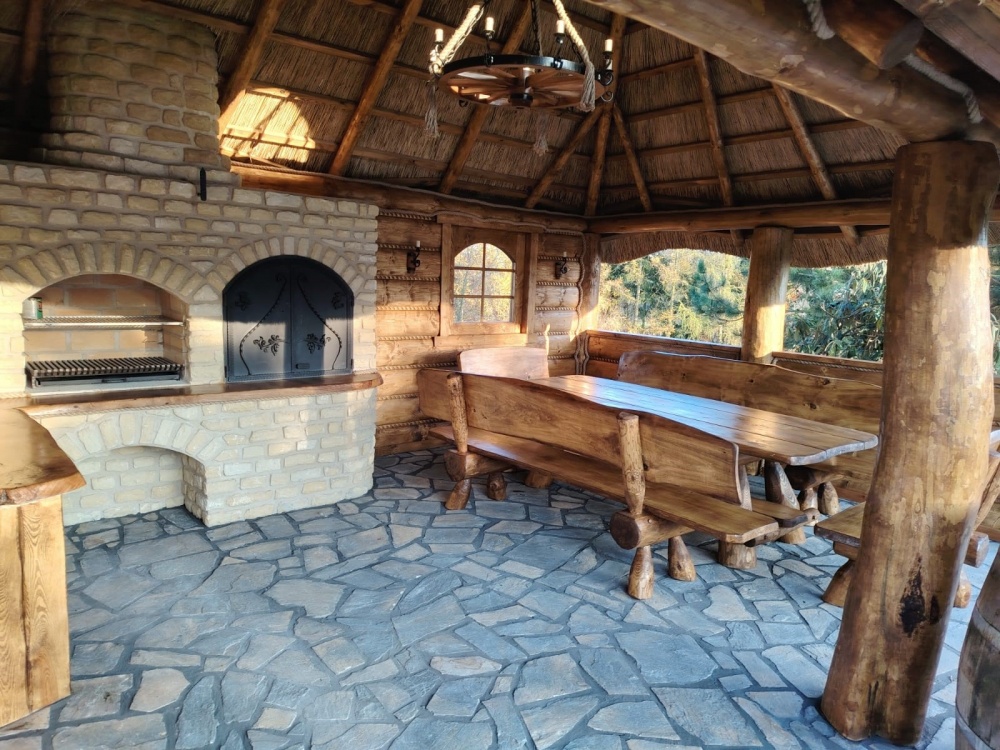 - grill kamienny z rusztem, otwartym wykonany z kamienia naturalnego, muraka- rodzaj kamienia do ustalenia przed rozpoczęciem prac.